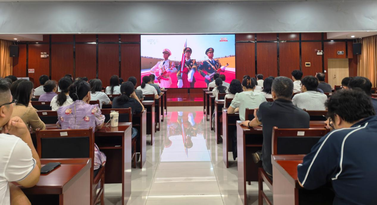 9月3日上午9时,广西—东盟食品检验检测中心组织全体党员、干部职工在十楼报告厅集中观看纪念中国人民抗日战争暨世界反法西斯战争胜利80周年大会现场直播。