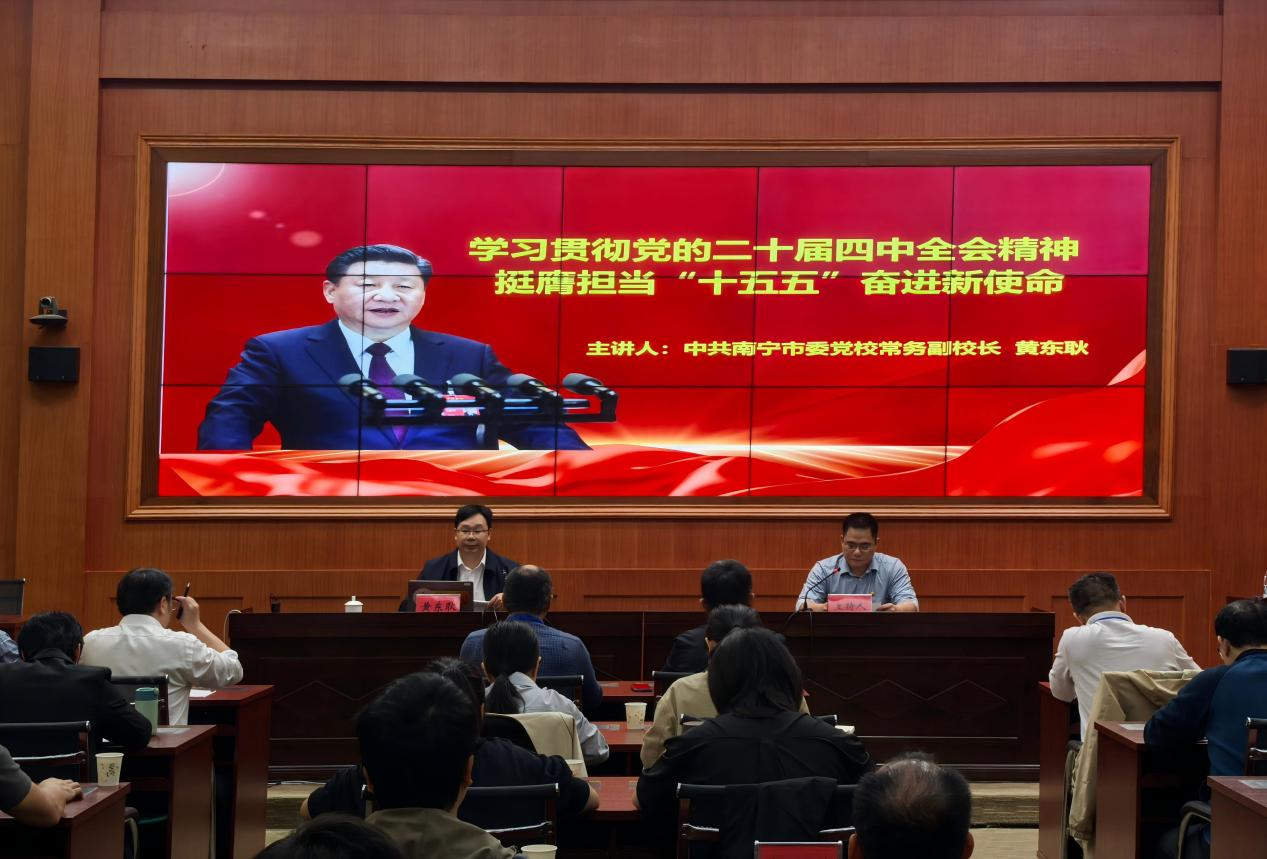 3月17日至20日,广西—东盟食品检验检测中心在中共南宁市委党校举办学习贯彻党的二十届四中全会精神暨树立和践行正确政绩观学习教育专题培训班,全体党员、中层干部共50人参加全脱产封闭式集中培训,推动理论学习走深走实、见行见效,为“十五五”规划开好局、起好步凝聚奋进力量。